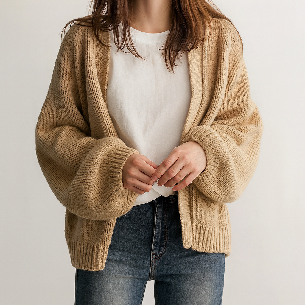 - Warme, grob gestrickte Strickjacke.