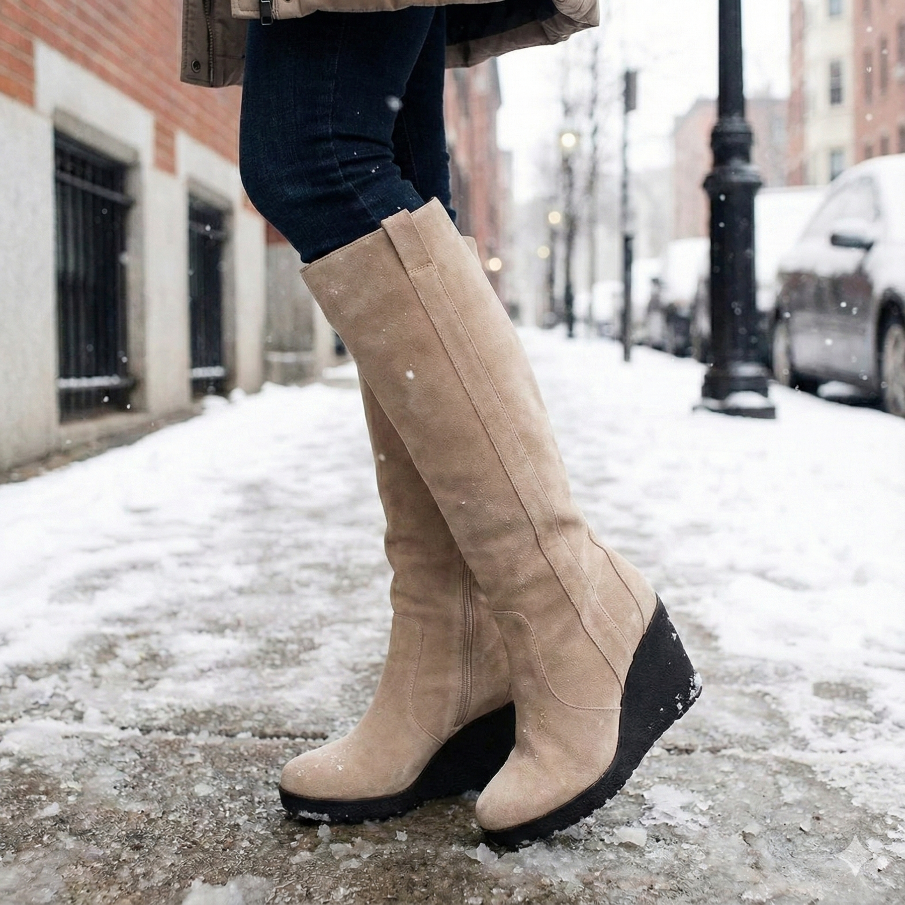 Diese Winterstiefel für Damen vereinen vielseitiges Design und Wärme in einem Stück. Der umklappbare Schaft ermöglicht zwei verschiedene Stile: einen hohen, schlanken Look für kältere Tage oder ein umklappbares Design, das das Innenfutter für ein lässiges, gemütliches Gefühl freigibt. Eine praktische Lösung, um das Schuhwerk an verschiedene Anlässe und Outfits anzupassen.