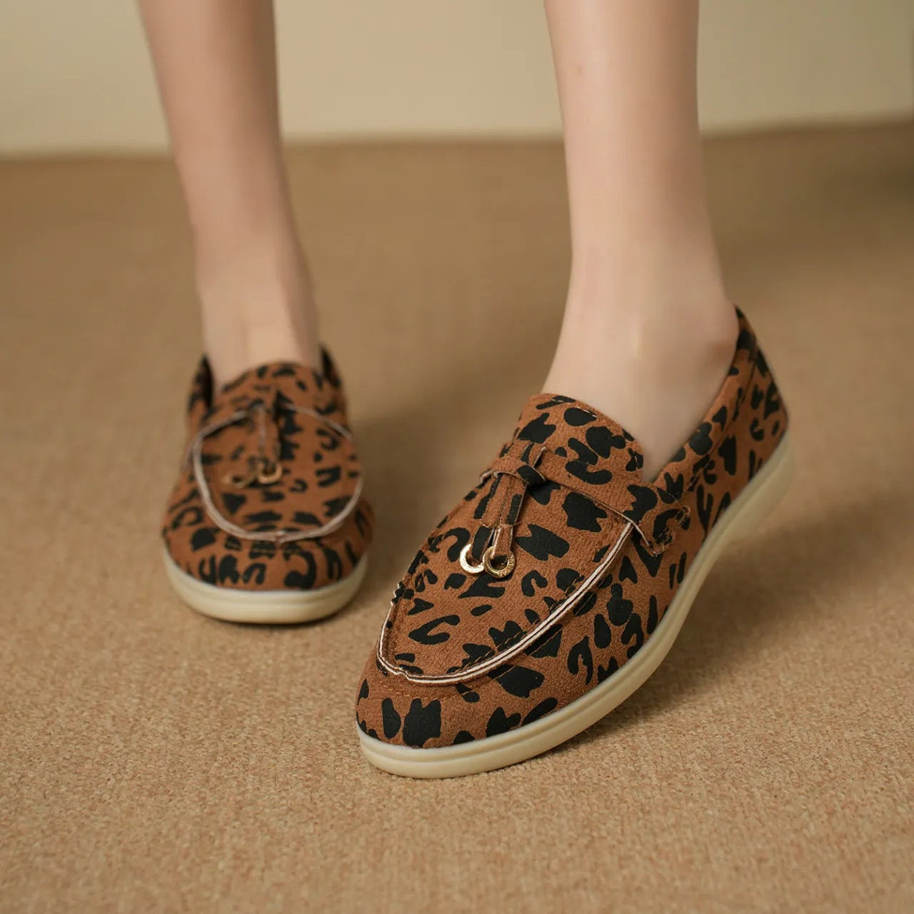 Trauen Sie sich, mit den Aurora-Mokassins aufzufallen, die klassischen Komfort mit dem wilden und eleganten Touch des Leopardenmusters verbinden. Sie wurden für stilbewusste Frauen entworfen und sind die perfekte Ergänzung, um jeden Look aufzuwerten, egal ob lässig oder raffiniert.