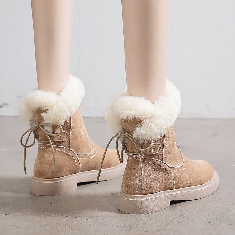 Diese Stiefelette hat eine weiche Textur, die den Fuß an kalten Tagen bequem umhüllt und ein behagliches Gefühl vermittelt, ohne die klare, ausgewogene Linie zu verlieren. Das Design behält eine einfache Struktur bei, die mit dem Tempo des Alltags mithält, während der obere Rand ein umhüllendes Gefühl verleiht, das das Gefühl von Wärme bei jedem Schritt verstärkt.