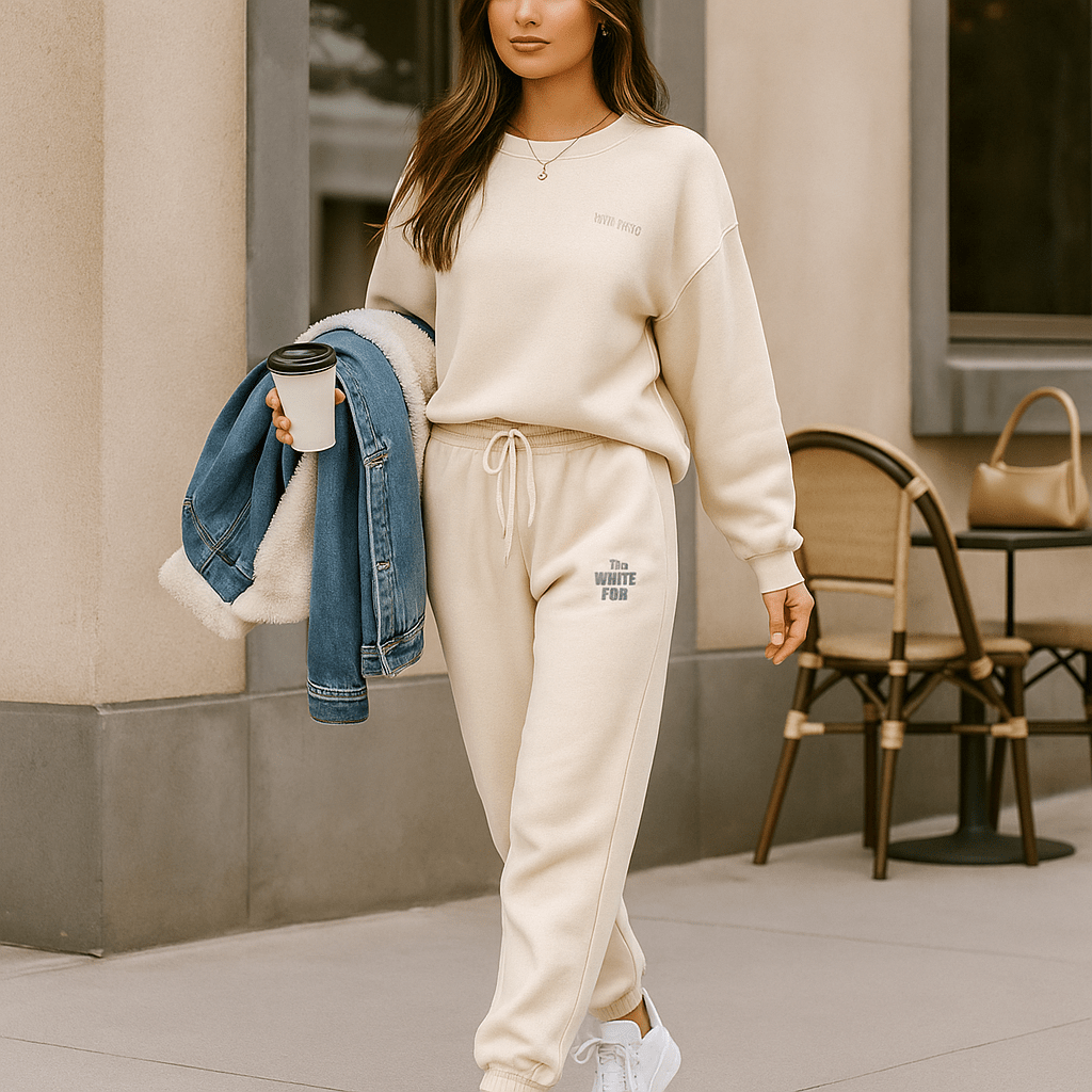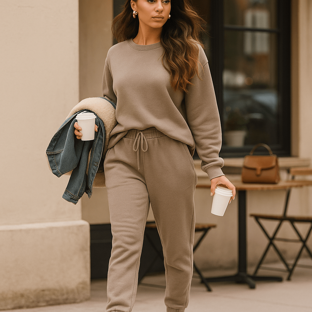 Dieses Ensemble fängt die Einfachheit ruhiger Tage ein, an denen Komfort zu einem stillen Luxus wird. Der weiche Stoff hüllt Sie in Wärme ein, während die lockere Passform eine natürliche Eleganz ohne Schnickschnack vermittelt. Perfekt für den Alltag oder eine Städtereise, bei der Komfort regiert.
