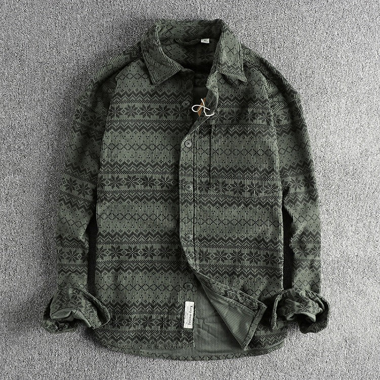 Langärmeliges Hemd mit ethnischem Muster aus Kord - Mauro