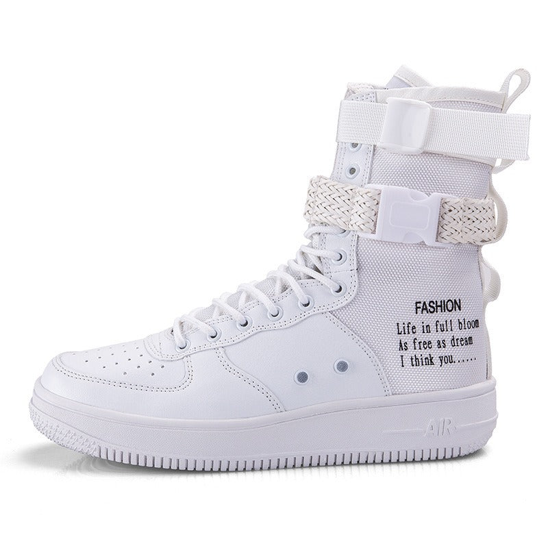 Das Obermaterial kombiniert verstärktes Canvas mit Synthetikeinsätzen und technischen Details wie verstellbaren Riemen, Metallösen und Zierschnallen. Der hohe Schaft bietet Halt und eine bequeme Passform, während das grafische Design für einen modernen Touch sorgt, der nicht unbemerkt bleibt.