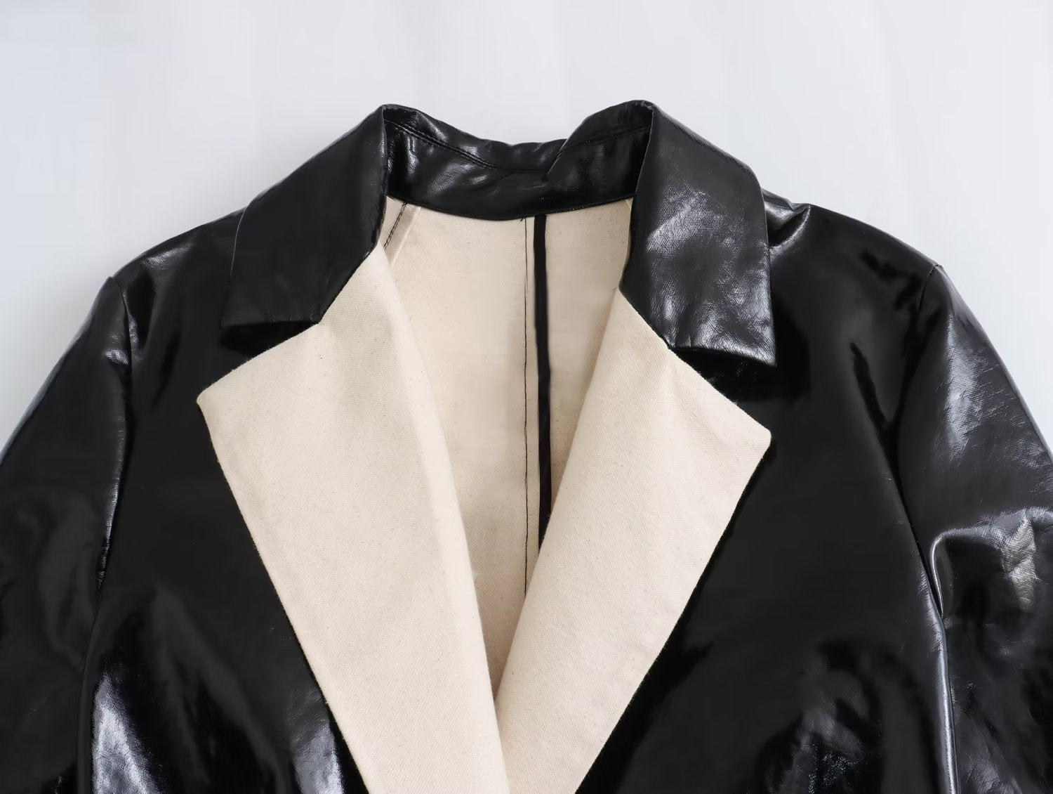 - Details: breites Revers und klare Linien