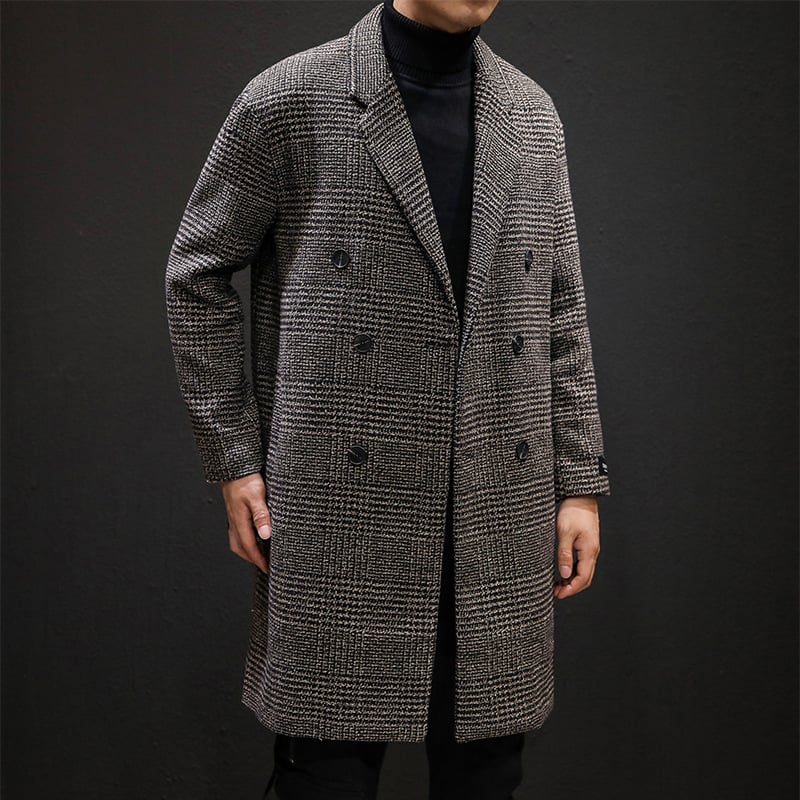 Herrenmantel in Wolloptik mit klassischem Muster - Ervahn